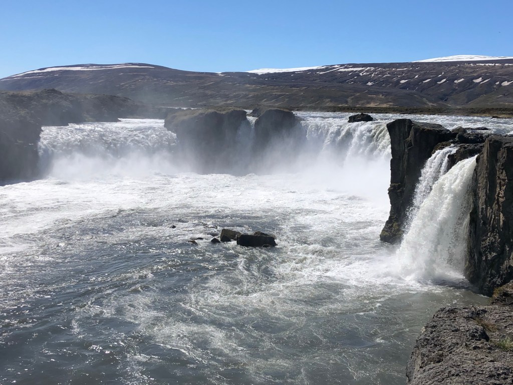 Thirty minutes later we pulled into Godafoss waterfall and made the short hike to the look out. As our first real close up of an immense Icelandic waterfall, they were certainly worth the stop.