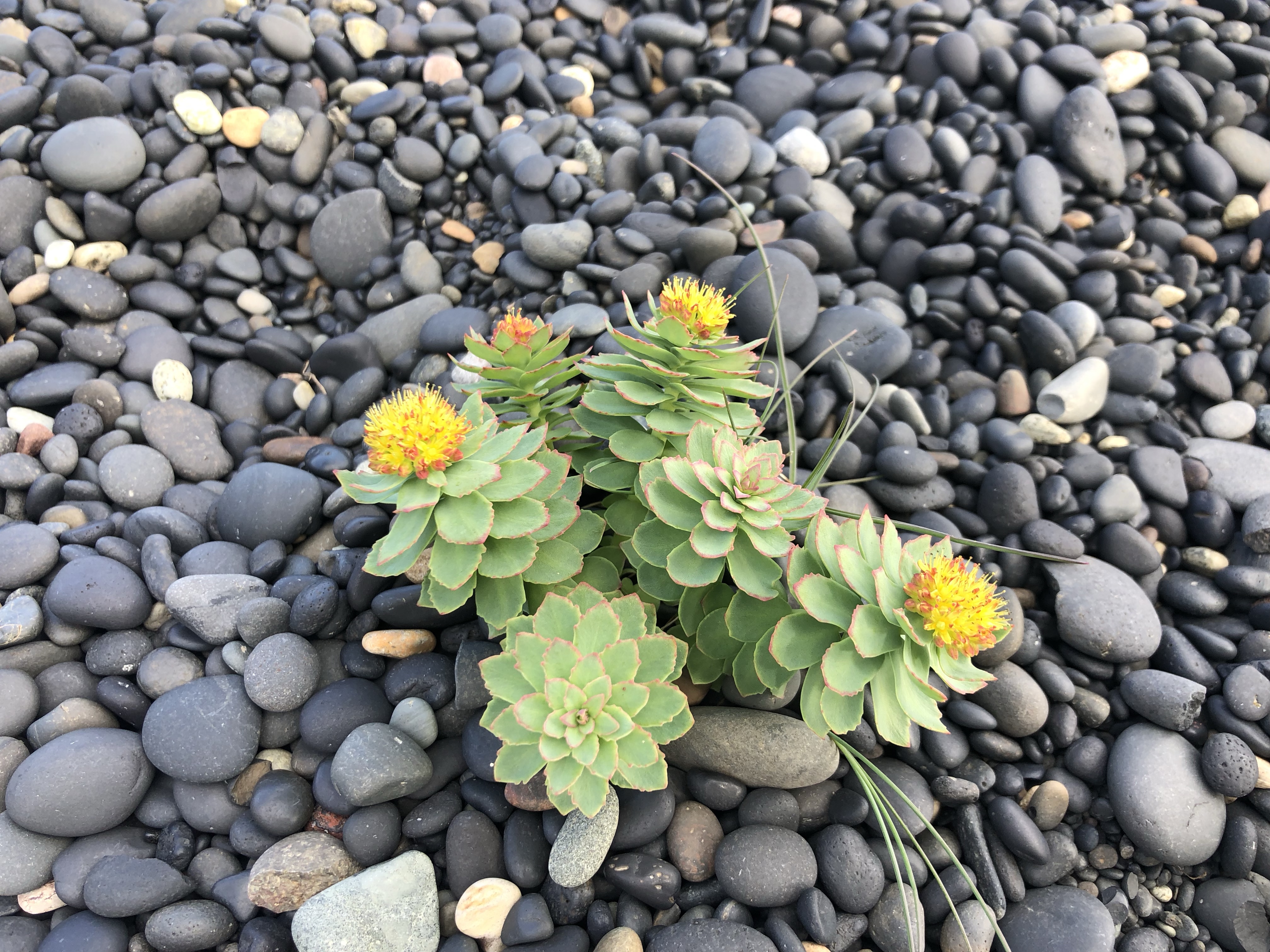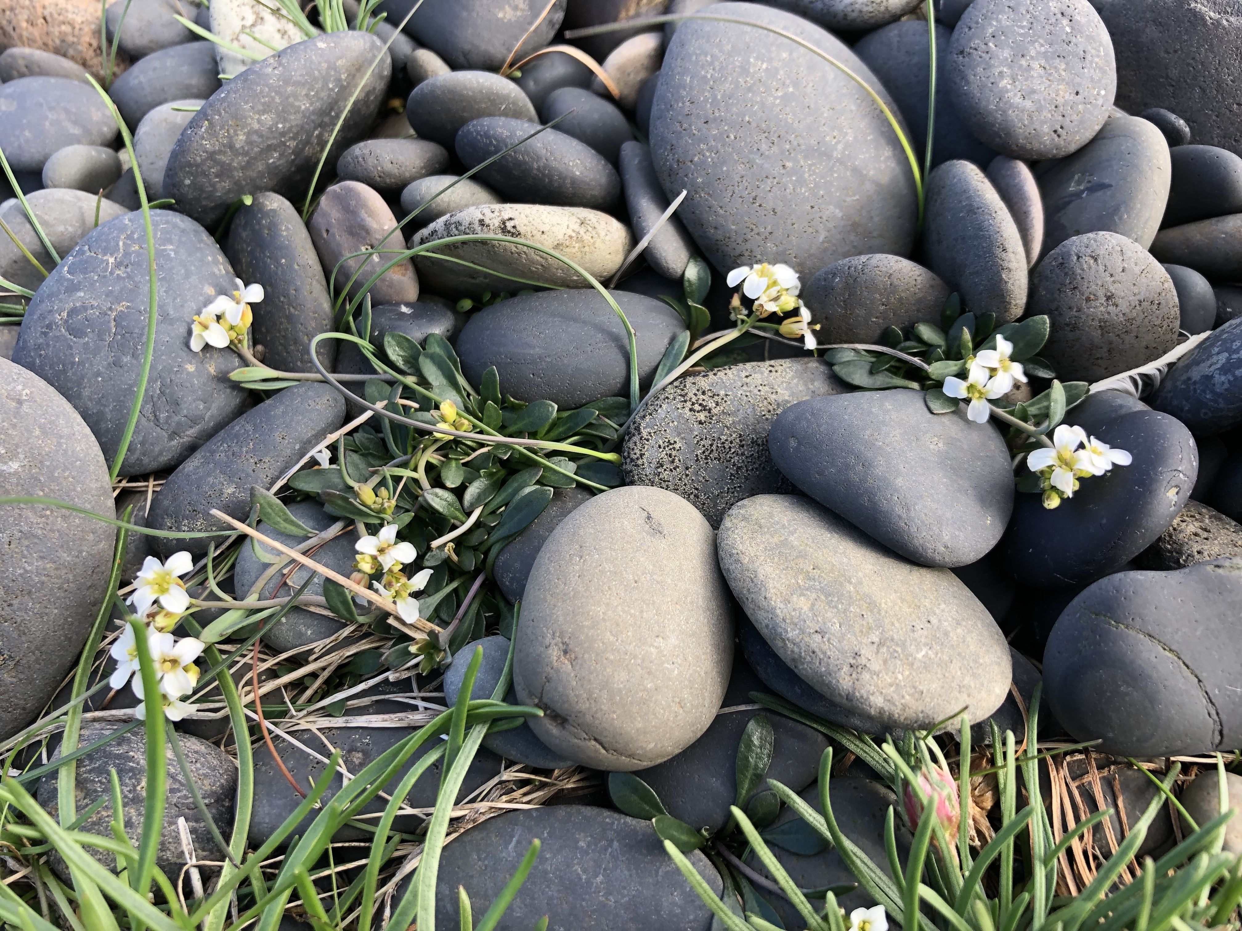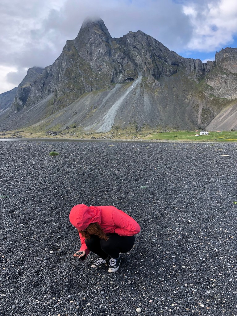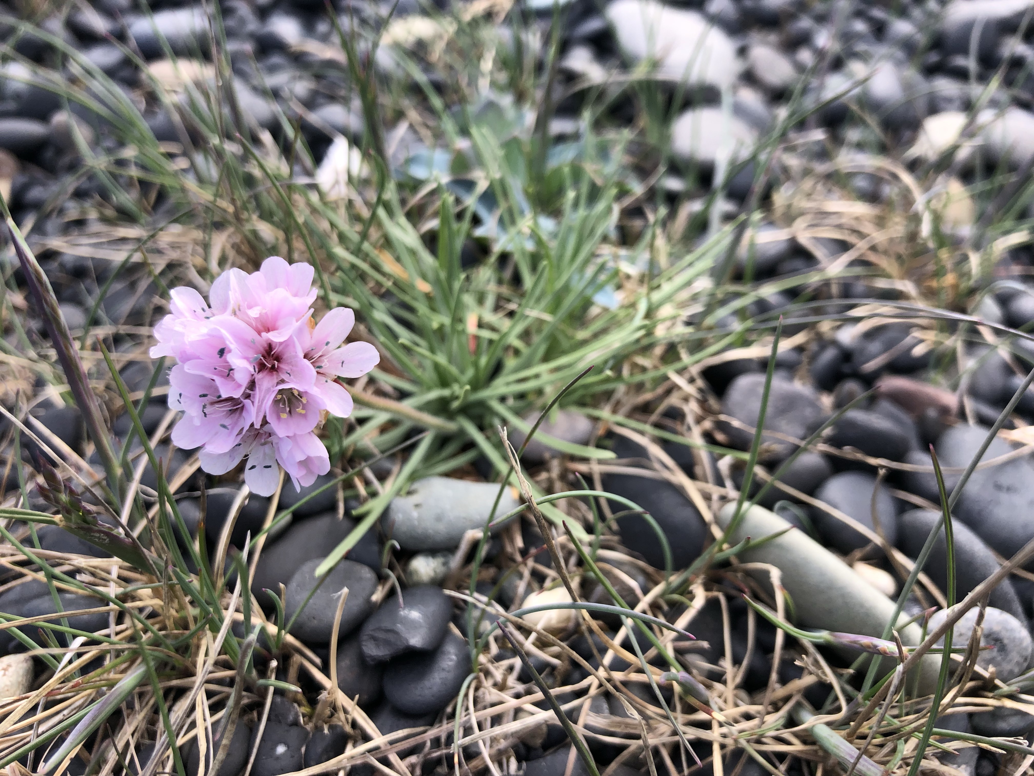 The one spur of the moment stop that stood out, was an enormous black sand beach, that turned out to be more of a black pebble beach but held Jenny’s fascination for a long time and she readily admitted she could have stayed on for hours more. As she plopped down and rooted around for rocks that caught her fancy, I spent time noticing all the little plants that miraculously make their home in this inhospitable environment. By the time we left, Jenny managed to assemble quite the collection of rocks and made sure to let me know that there would be no mixing with the ones I collected!