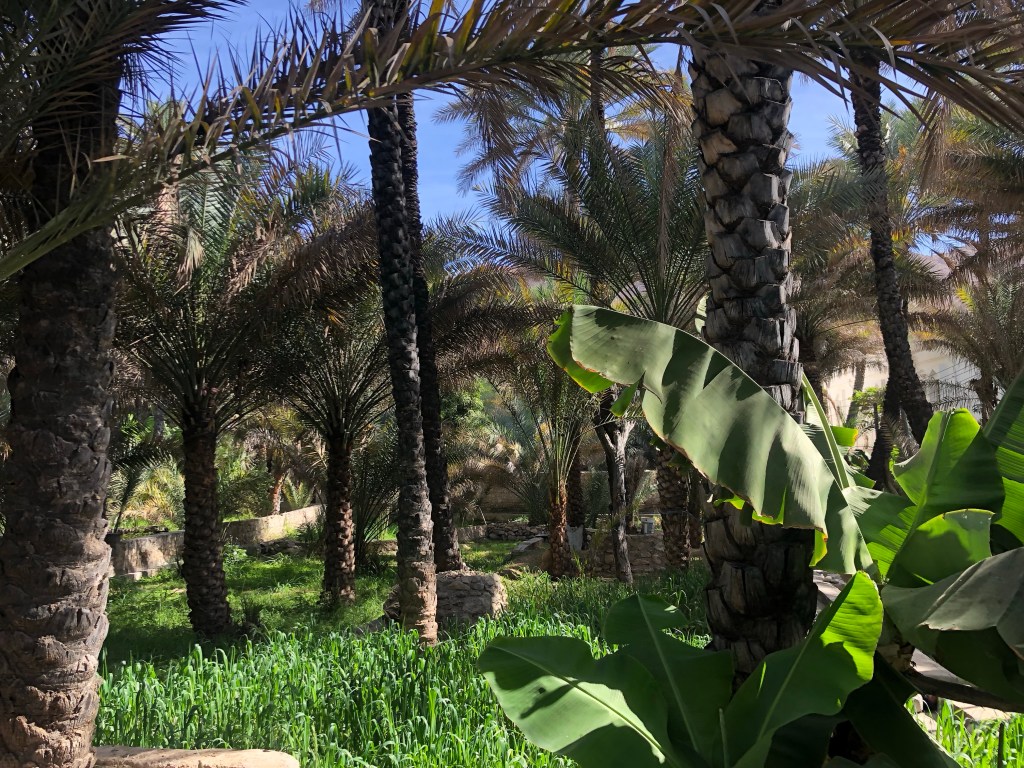 The road turned straight into a lush oasis filled with date palms and tall dark grass but the path quickly narrowed, like really narrowed, and I told Jenny this could not be right.