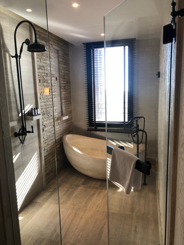 As usual, for a rather extravagant stay, I had used points to book the room – otherwise I can assure you, this would have been out of my budget. The Alila, is really spectacular and it has spectacular prices to go along with it… The free room and breakfast allowed for us to accept the prices for lunch and dinner, as well as try and stomach the cost of a little booze. The hotel is perched literally on the edge of a canyon, built with materials befitting the natural beauty of the area. It is elegant yet understated with top notch service and super comfortable rooms. BUT with that, I have to say, that I love that we all are just as comfortable and content staying in a tent with no A/C and an outdoor bathroom, with no hot water than we are staying in an over-the-top luxury hotel.