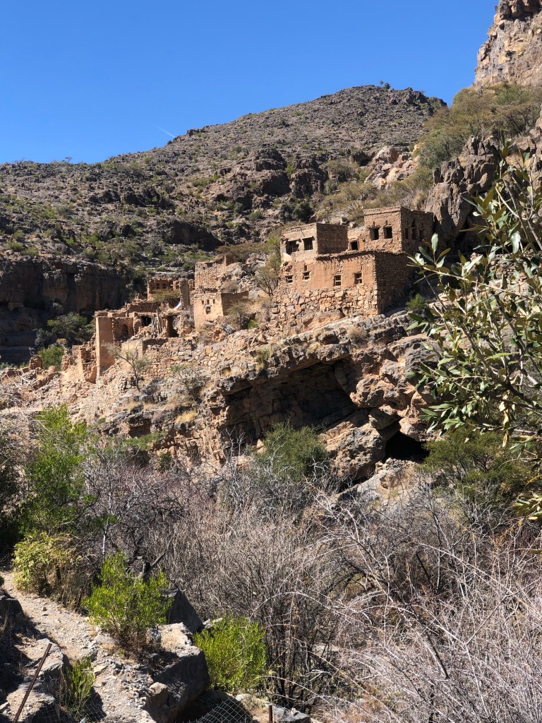 Our first destination was Wadi Bani Habib, an abandoned village half way down the mountain. We descended a hundred or so stairs down into the wadi before crossing over to the old village. The construction on the side on the hillside is really quite remarkable. Most of the homes have fallen into disrepair but some of the original architectural styles are still evident. And although it is abandoned, non-muslims are still not allowed in the old mosque.