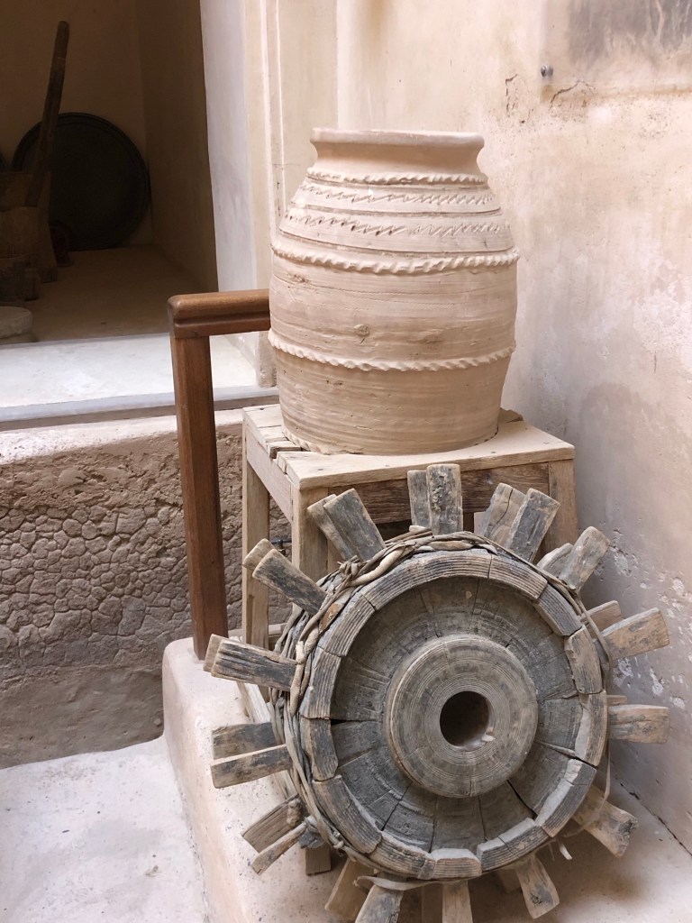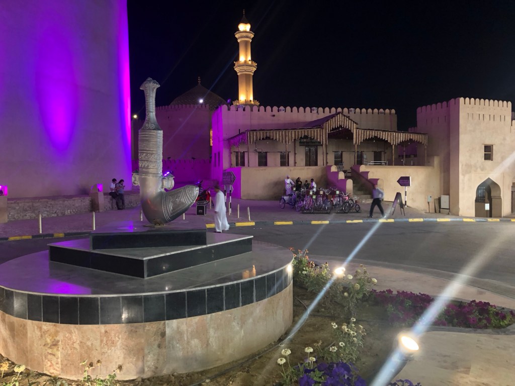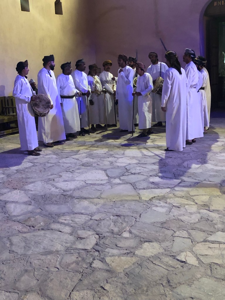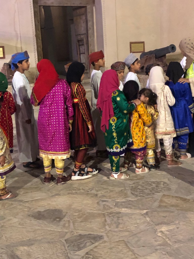 Jenny and I decided to walk through some of the old area before returning to the hotel for dinner. The town was bustling with families on foot, kids on bicycles, people on motorbikes and scooters, and cars all trying to share the same tight space. We walked up to Nizwa Fort, an imposing fortress that stands guard over the old town and decided to enter. There was a lot going on inside but the liveliness and — was a nice contrast to the serenity we had experienced at Wahiba Sands and Jabal Akhdar. It was fun to spend time in a town that was full of locals, doing their normal thing.