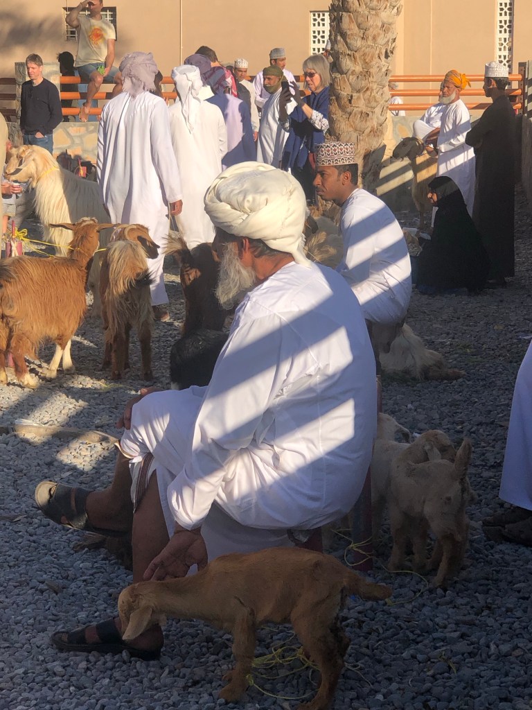 6:30 came fast this morning but Jenny rallied and we were up and out the door at 7:00. Last night after dinner, Abdullah offered to take us to the best ice cream place in Nizwa (turned out it was his uncle’s, haha, but the watermelon ice cream was delish) and show us where to go in the morning so we would be able to make a beeline for the goat market.