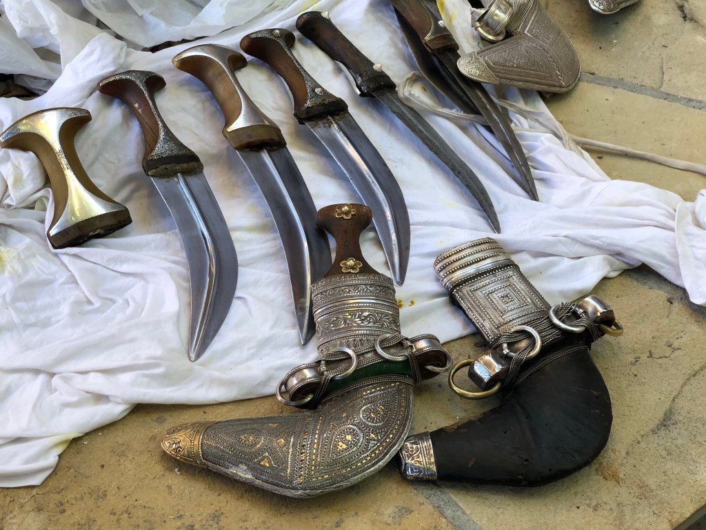 We continued on to the other market that I was interested in seeing, the gun market. Sellers come and display their weapons, including the traditional Omani Khanjar, a type of dagger that figures prominently in their crest. Buyers pick up the guns and even shoot them with some sort of blank in them. It was very interesting, there were other westerners there but no women buying or selling here.