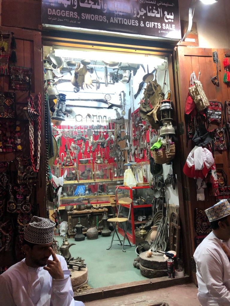 The last souq we went in to was the antique souq, I wish I could have been certain at the age of things, as I would have gotten something, but that is not my field of expertise. This souq was a bit dark and mostly deserted except for a group of four men sitting outside of one of the shops. The one kindly invited me in, I thanked him and told him I was just looking to which he said, “no problem, you can still only look but you can see it better” – it was all very friendly, not pushy nor creepy at all. One of the men sitting opposite him asked where we were from (of course) and when I told him, “America,” he, like the others, were very surprised and also assumed we had come from somewhere else and not straight from the States. He wanted to know why we chose Oman and how we had even known of it. He liked we had spent eight days, touring around from place to place.