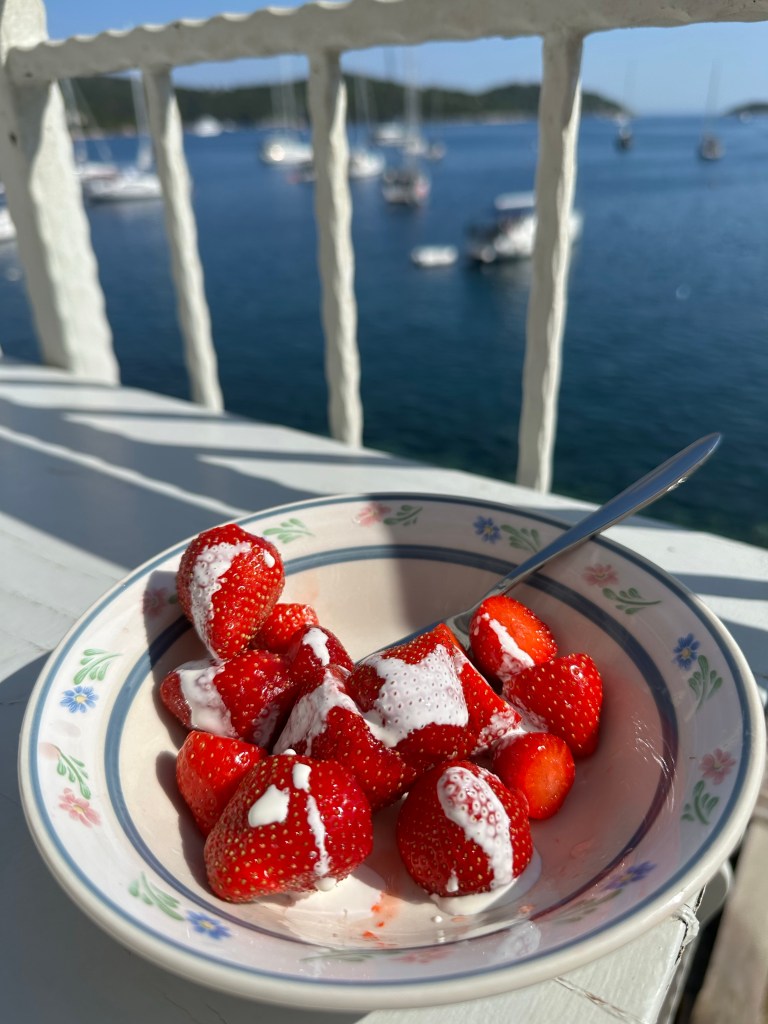 As the sun rose this morning, so did I. The instant coffee pack I bought yesterday answered all of my questions about what 3 in 1 meant once I poured hot water over it – apparently it includes coffee, creamer and sugar all mixed in one. Even if I don’t typically enjoy a sweet coffee, there was something almost sublime about this cup – sipping it on the balcony while listening to the faint hum of an outboard buzzing through the harbor. I enjoyed a slow start, finishing up my blog, checking in with Jenny making sure they were going to make their early flight from Rome (turned out they had been up before even I was awake) and fhen firmed up our plans for tomorrow’s boat ride.