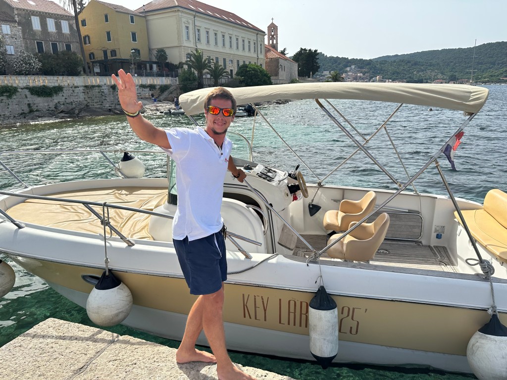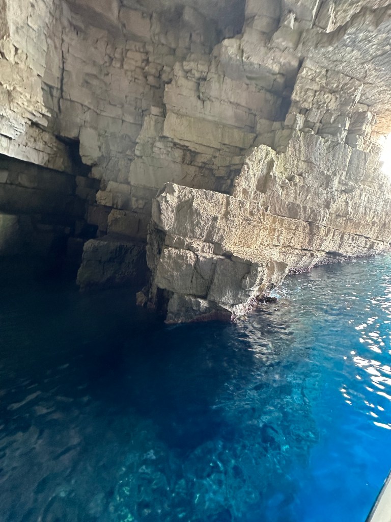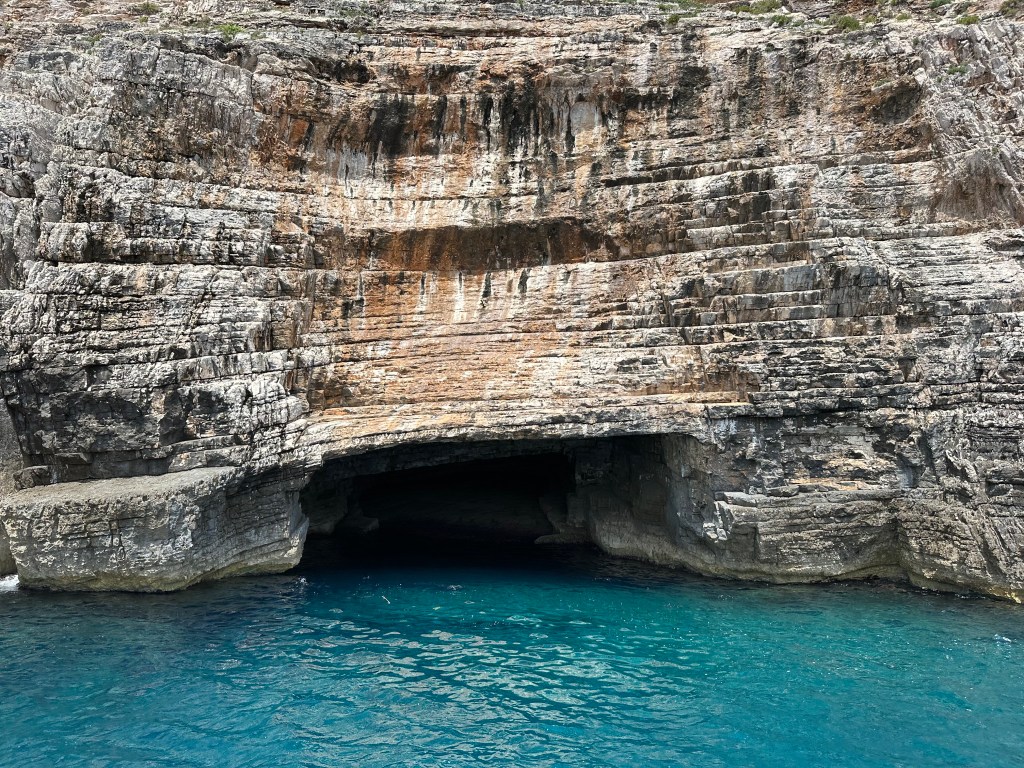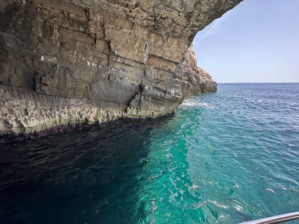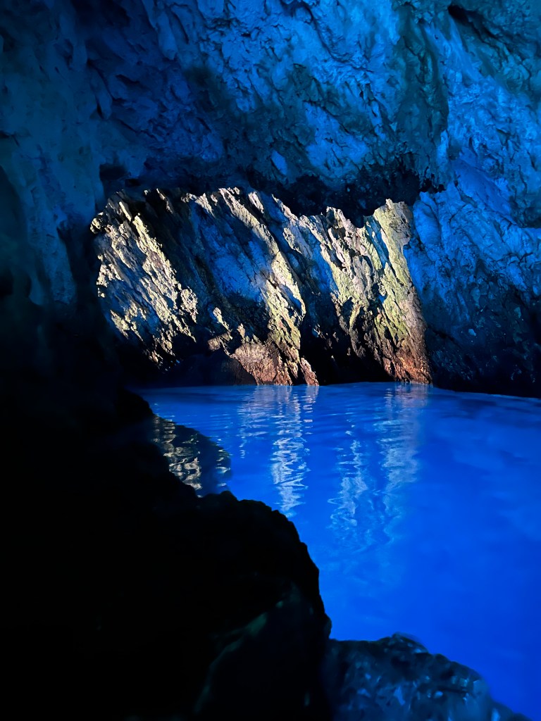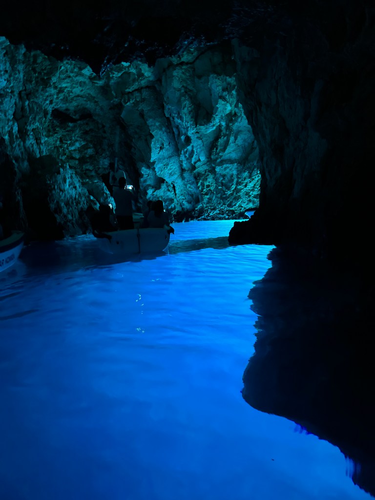 We showed up at 9:00 on the dot and met our captain for the day – a cute, 25-year old named Ivan (pronounced like Yvonne). Ivan’s English was understandable and he was eager to let me know that everything we did would be up to us – exactly what I was after. We discussed the planned stops and then agreed that once we were there we would decide if we wanted to stay or move on; the only one that we had agreed ahead of time for sure on was the famous Blue Cave, part of the Vis Archipelago UNESCO Global Geopark created in 2019.
