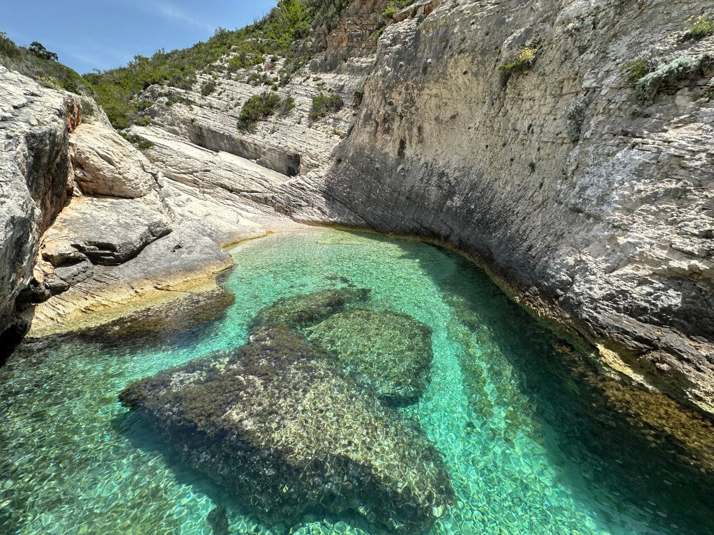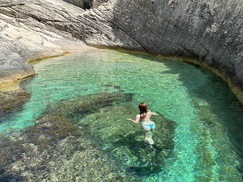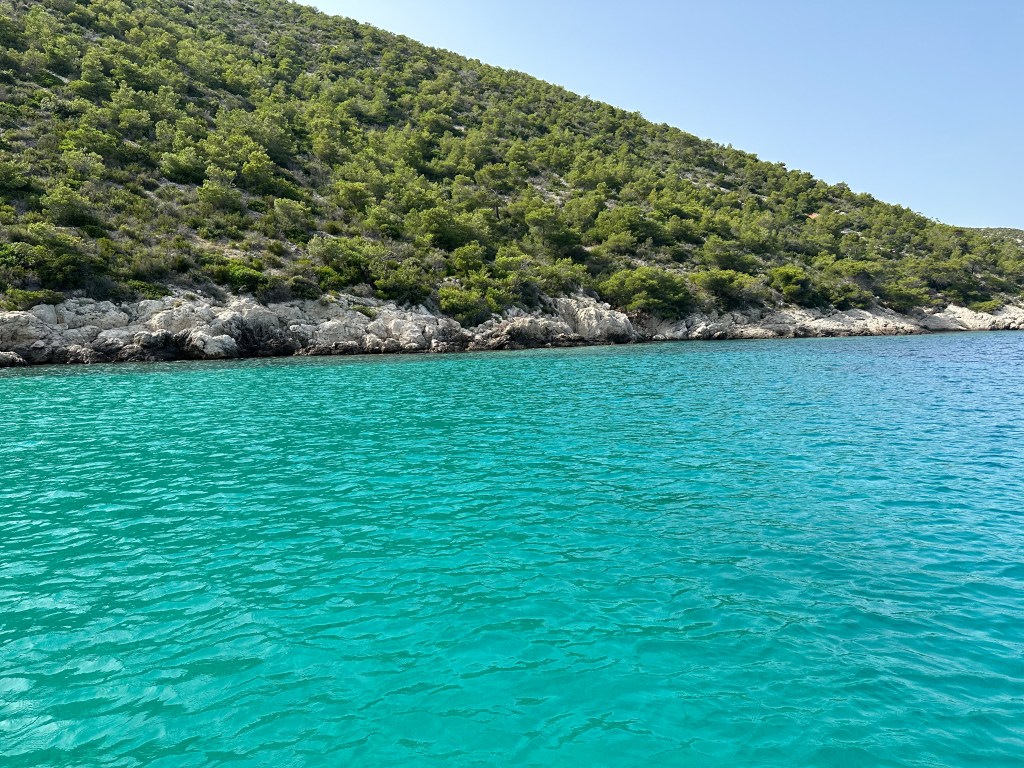 Our next stop was the small secluded bay Barjoška which was a filming location for Mama Mia 2. It looked a bit different as they brought in props for use in the movie, but either way, the cove was beautiful and it was the first stop, of many to come, where we enjoyed a brisk swim in a place we had basically to ourselves.
