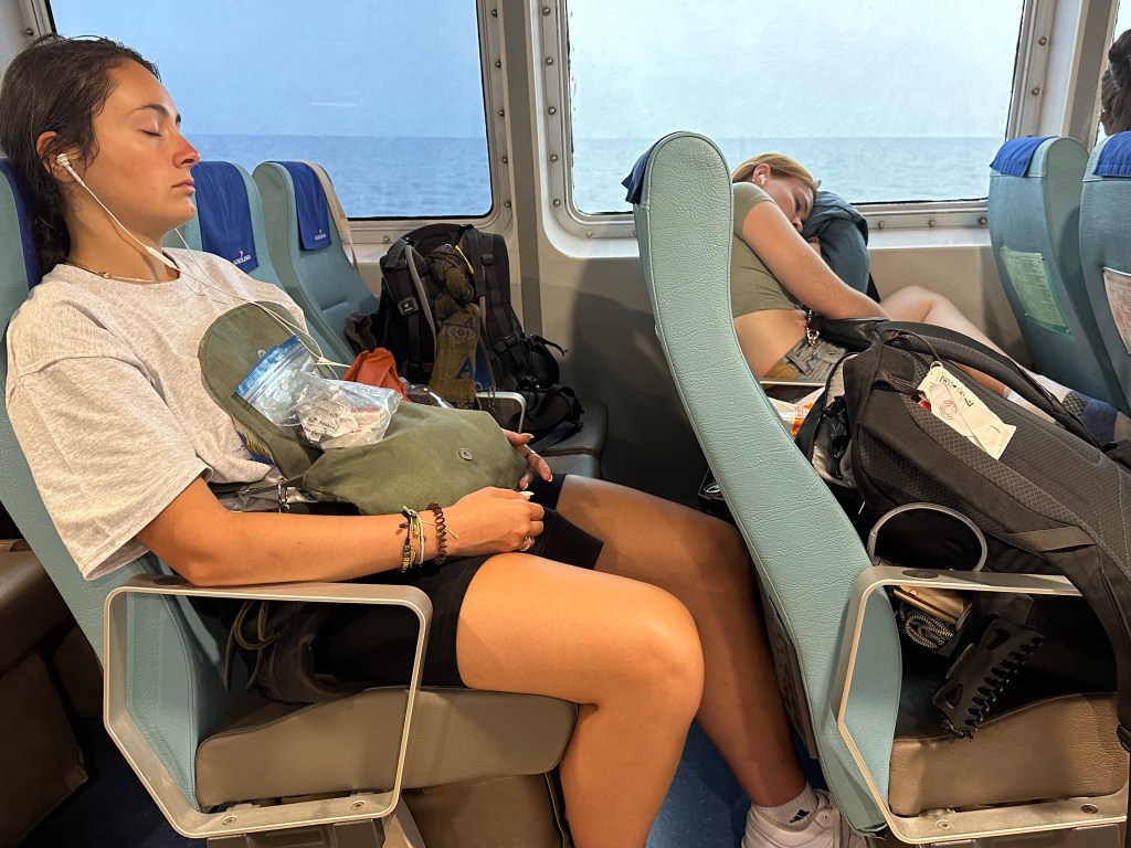 I had the alarm set for 5:15 this morning but when it went off I hit the stop button and decided I was too tired to finish my blog and I would just lay there until the girl’s alarm was set to go off at 6:00 AM, at least so I thought. As I lay there, I heard the church bell ring once for the half hour at 5:30 but the next thing I knew I was hearing the bell ring just one time again. Trying to figure out why it rang only once for what I thought should be 5:45 (and remembering I had heard it ring three times previously for quarter of), I grabbed my phone only to see that it was 6:30. “Oh sh*t,” I hollered….our ferry was leaving at 7:00 and the dock was a solid 12 minute walk.
