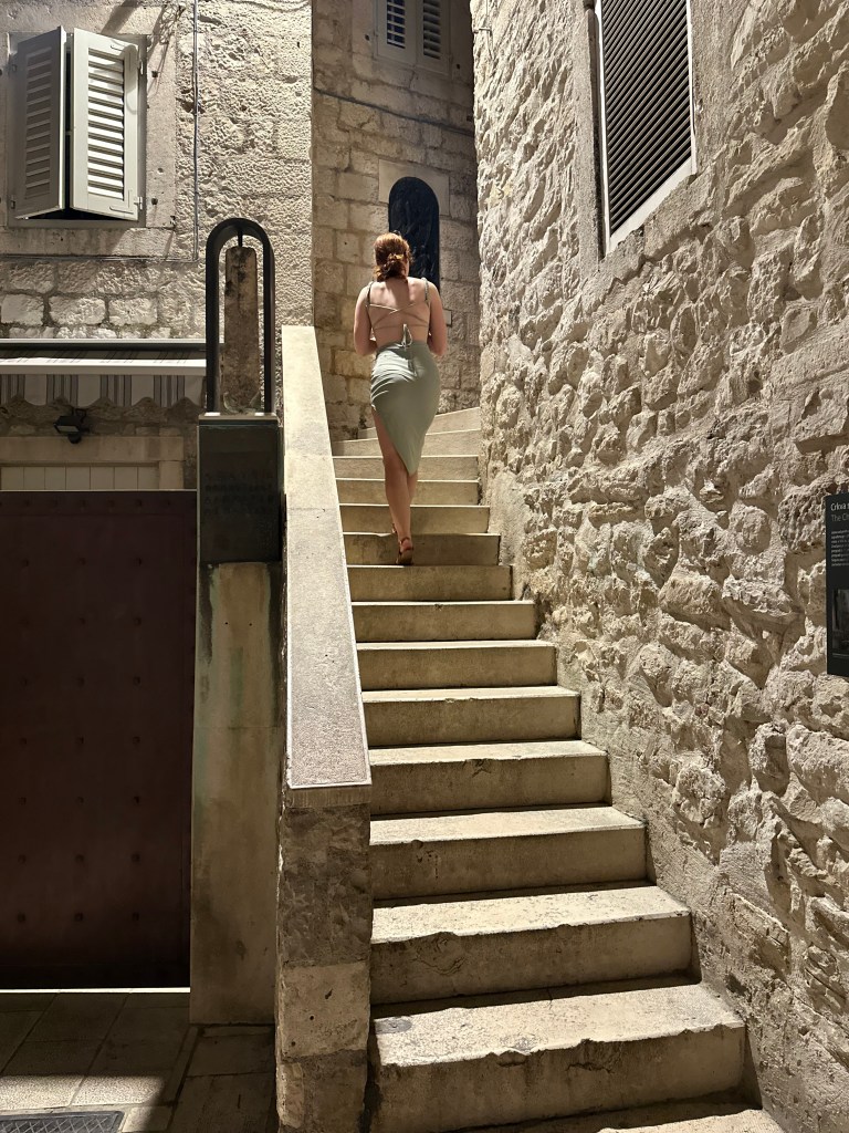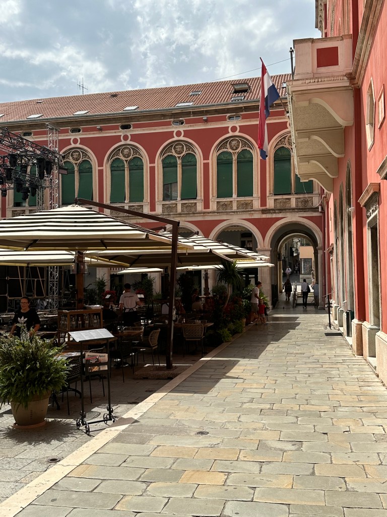 We were happy to receive an email from our apartment that it would be ready to check in at 10:30 instead of the 3:00 they had originally told me. Today was another very hot day and we were happy to relax in the AC for a bit before venturing out. The apartment, as I had researched, was in a perfect location, right on the edge of the ancient Diocletian’s Palace. The “palace” (resembling more a fortress) was built for the aforementioned Roman emperor at the turn of the 4th century as his retirement residence and was added to the UNESCO World Heritage List in 1979.
