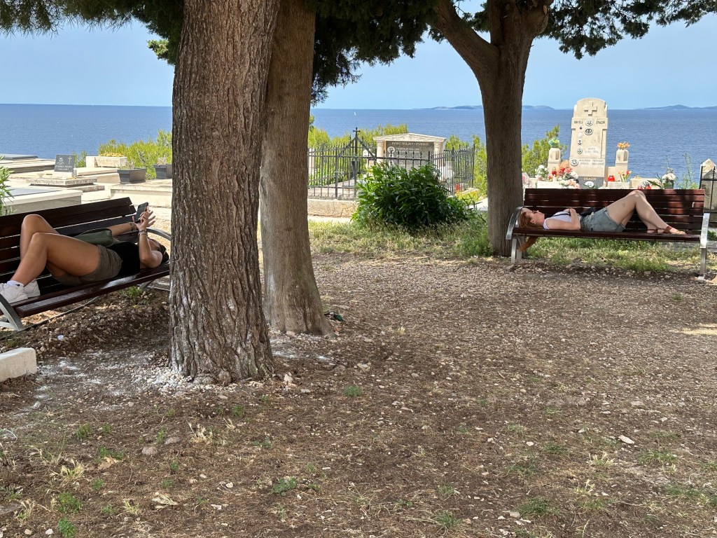 The small church really held a beautiful spot and the cemetery surrounding it had spectacular views. The breeze on top of the hill was delightful and combined with the shade, made for a relaxing respite from the sun. We all just found a spot to chill out a bit before making our way back down in search of lunch.