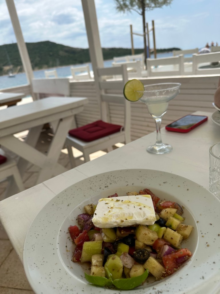 We selected a spot right on the water. We each ordered a greek salad and split a basket of freshly baked bread which was divine.