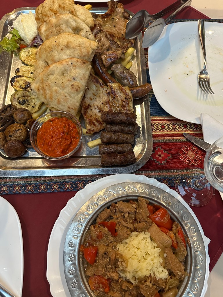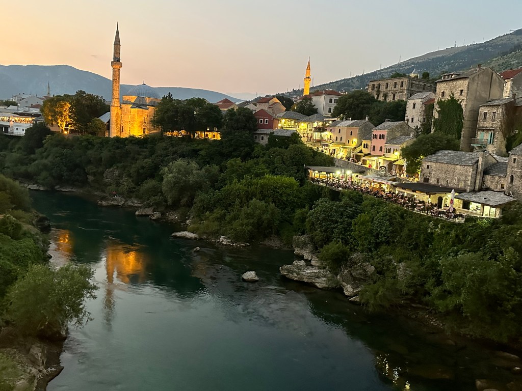 By the time we reached our destination for the evening, Mostar, it was a bit after 6:00. After quickly changing we headed out to find the restaurant Jenny had read about, one that specialized in Middle Eastern foods. Our dinner was delicious and we had the added bonus of listening to the call to prayer as we dined.