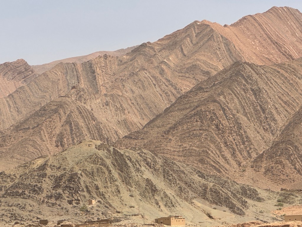 We headed out, making it unscathed through another checkpoint and started west. We were literally only 20 minutes outside of Tata before the scenery began eliciting audible, “Wows.” The mountains, more visible today though not perfectly clear, were stunning. The geological features really stood out with all the striations and folding that clearly took place.