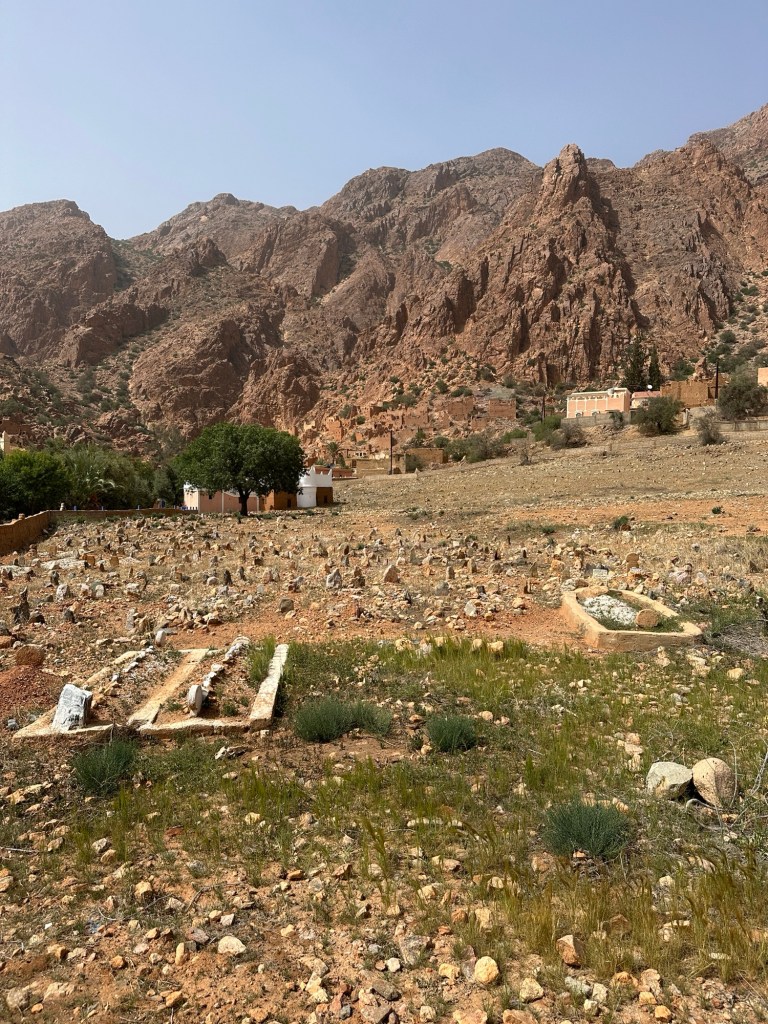 We parked the car at the end of the road, right in front of the cemetery and next to the mosque. Muslim cemeteries are quite unique in that they typically have no headstone but will leave a broken piece of pottery in its place.