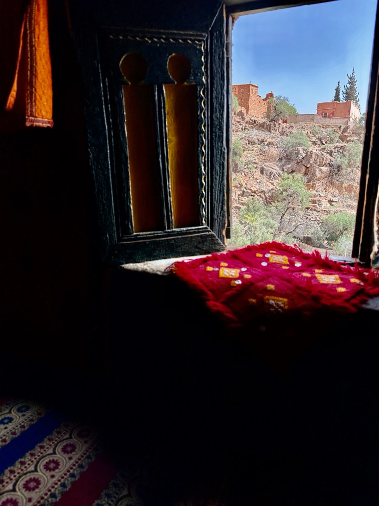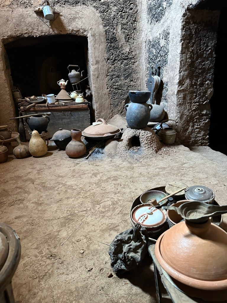 The owner of the museum, Mustafah, spoke very good English and welcomed us in. The home had been in his family for generations, but had been running as a museum now for forty years. We entered the 400 year old building on the ground level where the livestock was kept – usually a donkey, a cow, and some goats. There was also the working area where the grinding stones were found to create flour from wheat or barley and oil from argan nuts.