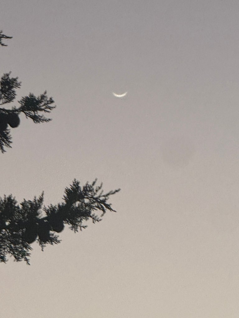 Eid is set to the sighting of the new moon and tonight was a picture perfect example (taken by Jenny out of her bedroom window).